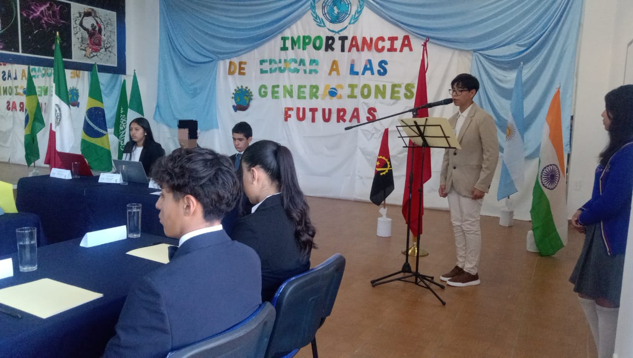 Se llevó a cabo una simulación del modelo de las Naciones Unidas, en donde los alumnos estructuraron sus discursos sobre la importancia de educar a las futuras generaciones en el cuidado del medio ambiente; fortaleciendo las competencias investigativas y de comunicación oral.